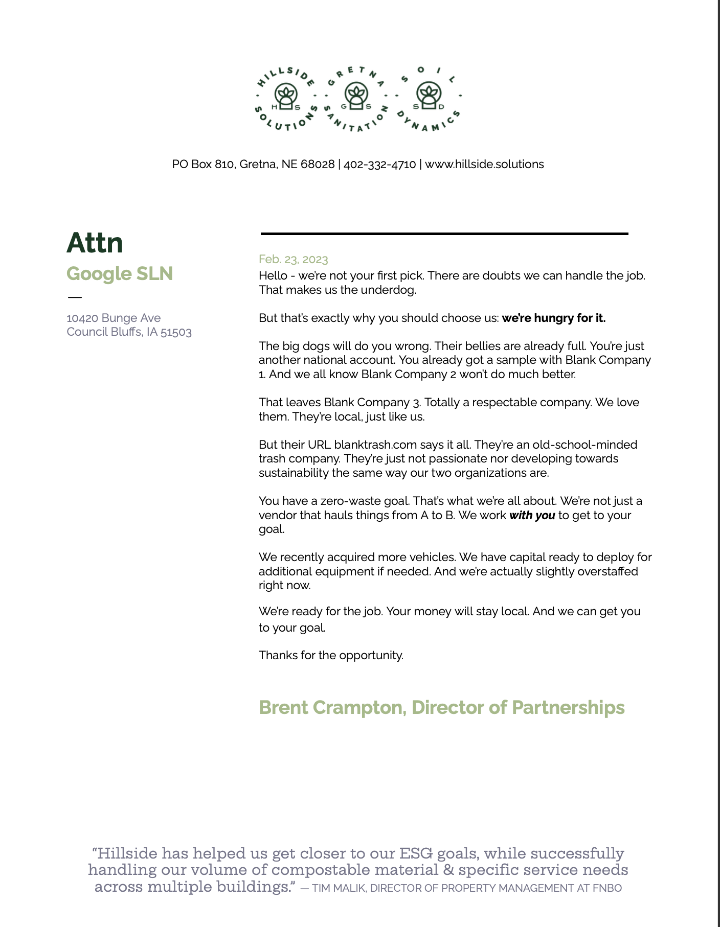 A Hillside coworker of mine told me she thinks about this letter at least once a month. I call it the letter that got me a $250,000 annual contract.